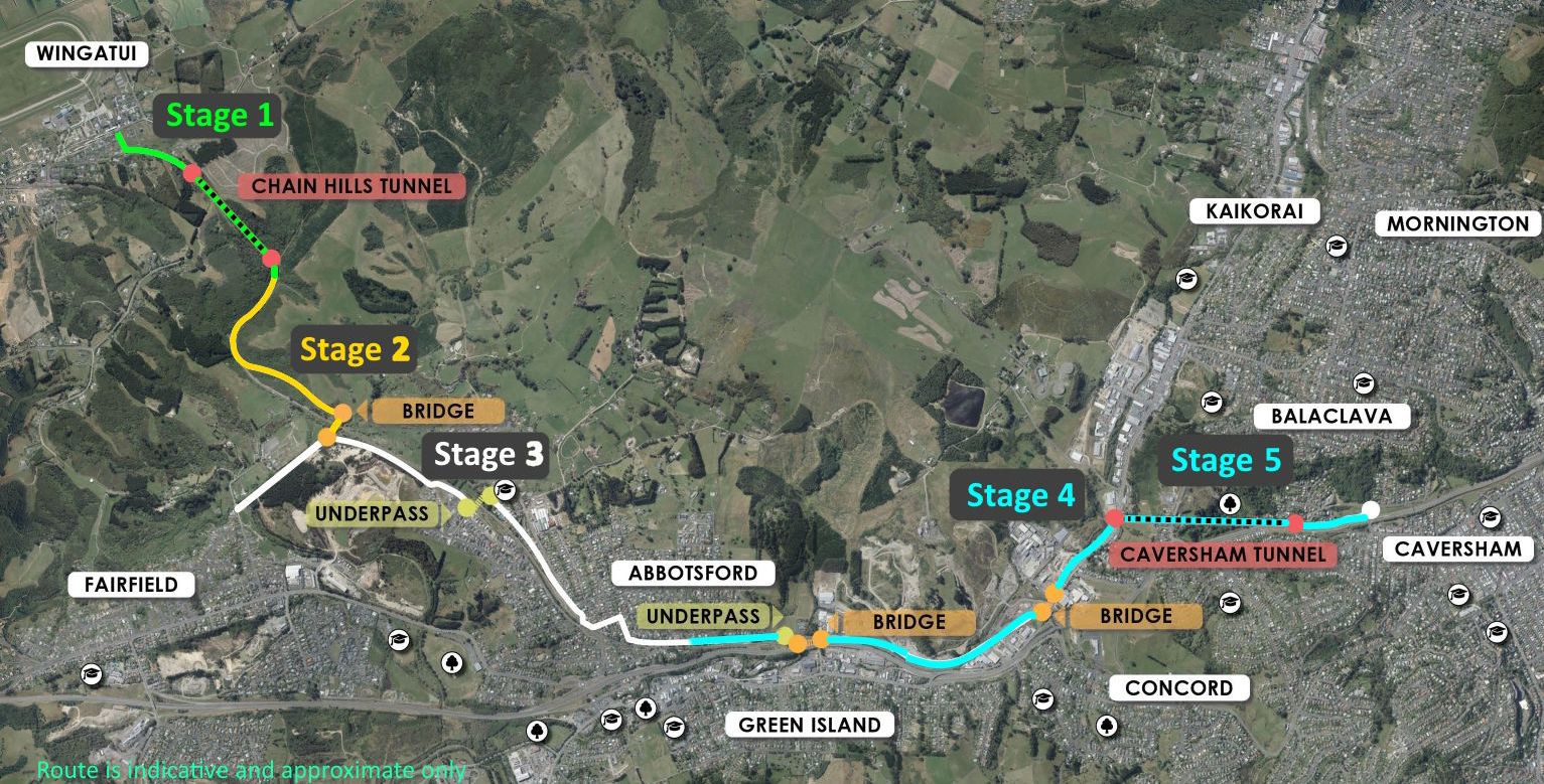 The Government is investing in stages 2 and 3 of the project, extending the trail to Fairfield, Abbotsford, and Green Island. Stages 4 and 5 will take the trail to Kaikorai Valley and through the Caversham Tunnel into Dunedin City.